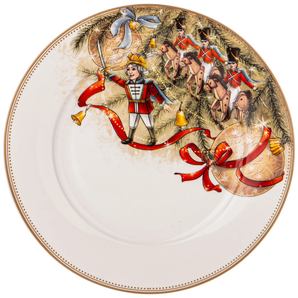 ТМ LEFARD эксклюзивная коллекция «Nutcracker» - Щелкунчик создана по мотивам одноименной истории, с которой знакомы все дети и взрослые. Волшебная история о новогоднем чуде идеально подходит для создания праздничного настроения. Широкий ассортимент тарелок, салатников, кружек, чайных пар поможет сервировать праздничный стол и создать сказочную атмосферу. Все изделия выполнены из качественного тонкого фарфора. Прямые современные формы, удобные объемы. Стильная, подарочная упаковка. Дарите сказку друзьям и близким людям! Можно использовать в СВЧ, не рекомендуется мыть в посудомоечных машинах во избежание повреждения золотой отводки (деколи) на изделиях.