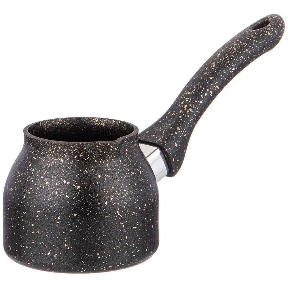 ТМ AGNESS представляет линейку посуды из утолщенного кованого алюминия премиального качества. Кованый корпус ТОЛЩИНОЙ 2,5 MM выполнен из высококачественного алюминия, который обеспечивает высокую теплопроводность и сокращает время приготовления. Кофе приготовится равномерно и быстро ДОЛГОВЕЧНОЕ, прочное антипригарное покрытие на 100% безопасно, так как не содержит перфтороктановую кислоту (PFOA FREE) Турку можно использовать на всех видах плит, кроме индукционных. Ручка с покрытием SOFT TOUCH (англ. - мягкое прикосновение) очень удобна для захвата и позволяет готовить без прихваток. Коллекционный дизайн серии "ЧЕРНОЕ ЗОЛОТО" - роскошный и практичный одновременно Можно мыть в посудомоечной машине ТM AGNESS - ГОТОВЬТЕ С УДОВОЛЬСТВИЕМ