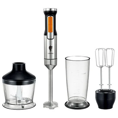 Мощность 800 Вт 2 скорости работы: Обычный и Turbo режим Регулировка скорости Насадка блендер из нержавеющей стали Ножи из нержавеющей стали Измельчитель 500 мл Двойной венчик Стакан для смешивания 800 мл.