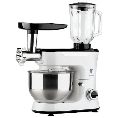 Универсальный прибор 3 в 1 (планетарый миксер / блендер / мясорубка) Мощность 1000 Вт АС двигатель Низкий уровень шума 6 скоростей Импульсный режим Чаша из нержавеющей стали 4,8л Планетарное вращение насадок Насадка венчик Насадка для теста Насадка для смешивания Прозрачная крышка для чаши с окном для добавления ингредиентов Кувшин блендера из высококачественного стекла категории "А" Обьем кувшина блендера 1,5 литра Удобная крышка с отверстием для добавления ингредиентов Мясорубка для измельчения мяса Производительность мясорубки 1,5кг/мин 2 диска из нержавеющей стали для крупного и мелкого помола(5 и 7 мм) Насадка для колбасок Насадка для кеббе Система защиты двигателя от перегрузки/перегрева Smart Defense Ножки-присоски против скольжения 2 года гарантии