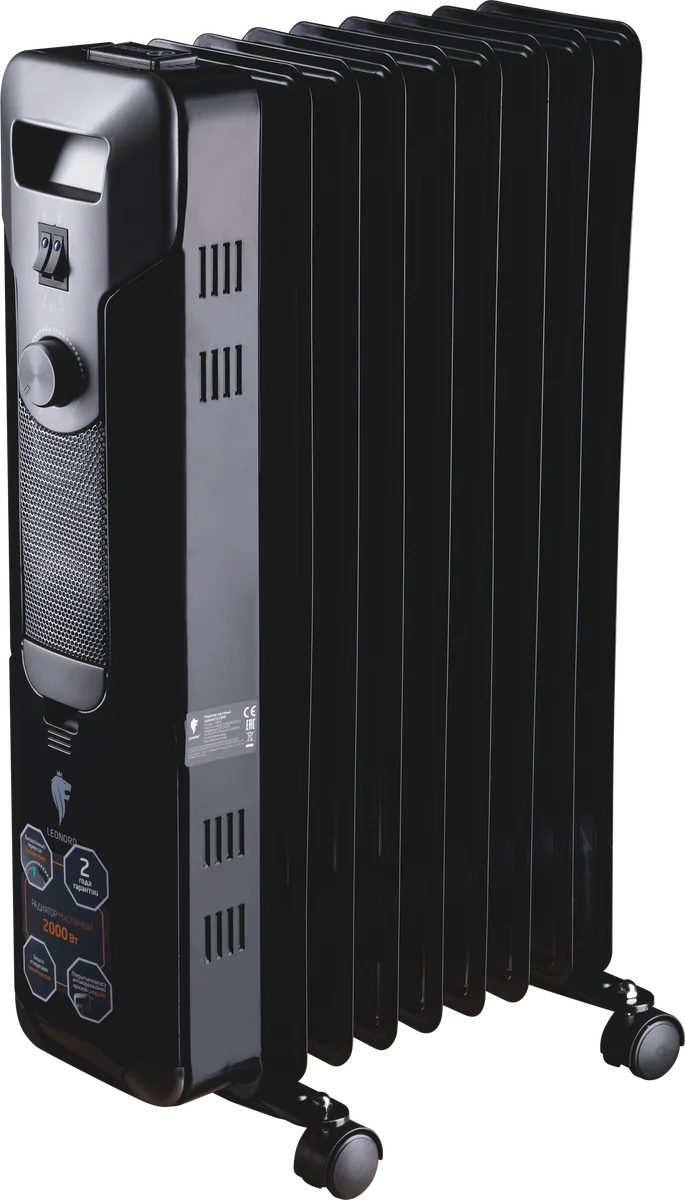 Масленый радиатор на 11 секций, мощностью 2500 Вт эффективно обогревает, экономя энергию. Благодаря маслу внутри него, которое остается теплым длительное время, даже после выключения. Радиатор оснащен высокоточным термостатом Precision Heat с 3-мя режимами мощности. Благодаря колесикам радиатор можно легко переносить в любое другое место. Корпус покрыт антикоррозийной краской Long Life.