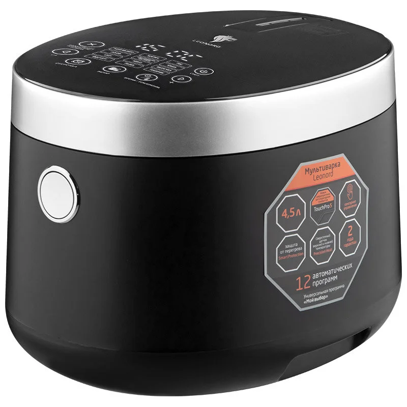 Мощность 860 Вт Обьем чаши 4,5 л Чаша с антипригарным покрытием Touch Pro 5 Пластиковый корпус Сенсорное управление LED дисплей 12 программ приготовления Датчик Precision Heat верхней и нижней температуры Съемная внутренняя крышка для удобной чистки Система защиты от перегрева Smart Protection В комплекте: контейнер-пароварка, мерный стакан, лопатка и ложка Длина шнура 120 см Гарантия 2 года