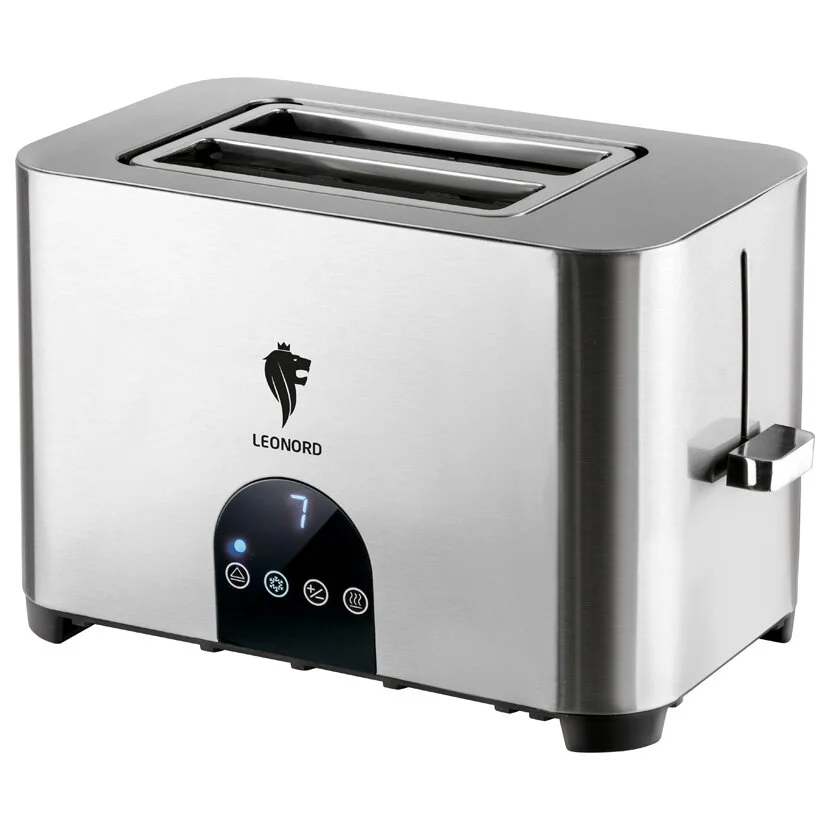 Металлический корпус LED Дисплей 2 широких слота для хлеба 7 степеней прожарки Место хранения шнура Поддон для крошек Ручная установка времени Автоматический подъем готового хлеба Функция разморозки Функция подогрева Мощность 750-850Вт Гарантия 2 года
