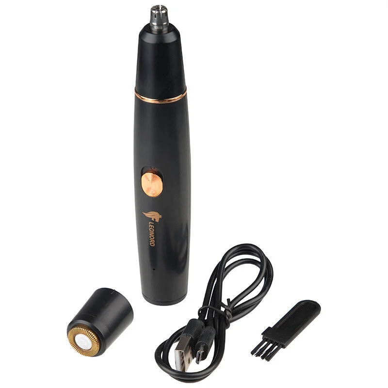 - 2 насадки: триммер для носа и ушей, насадка для бритья