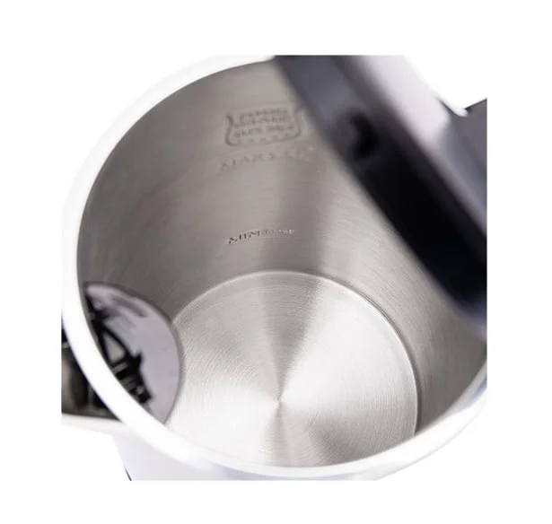 Благодаря конструкции с двойными стенками чайник производит меньше шума, внешний корпус при этом почти не нагревается, а вода дольше остаётся горячей.