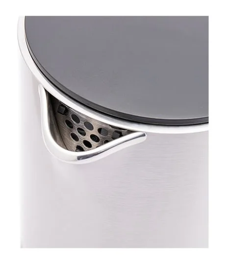 В носик встроен фильтр против накипи, который препятствует её попаданию в кружку. Благодаря поворотной платформе чайником удобно пользоваться как правшам, так и левшам. Внутри неё расположен отсек для сетевого шнура.