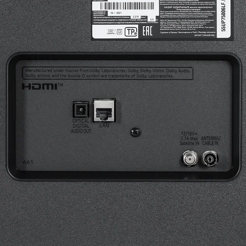 Телевизор LED LG 55UP75006LF работает под управлением WEB OS, которая открывает доступ к множеству приложений — онлайн-кинотеатрам, музыкальным и стриминговым сервисам и даже играм. Для подключения к сети Интернет может использоваться встроенный модуль Wi-Fi или порт Ethernet. Помимо этого предусмотрено множество разъемов для подключения аналоговых и цифровых устройств. Также есть модуль Bluetooth. Телевизор может располагаться как на настольной комплектной подставке, так и монтироваться на стену при помощи крепления VESA. Поставляется вместе с пультом ДУ и кабелем питания.