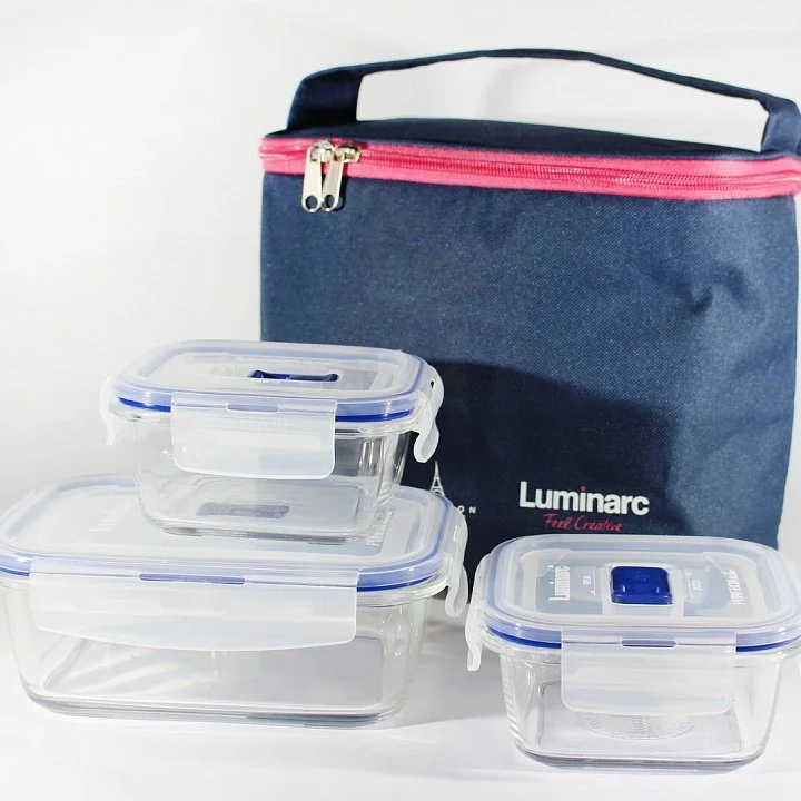 Контейнеры с термосумкой используются в основном для пикника, походов на рыбалку или на дачу. Идеально штабелируются и занимают мало места. Термостойкое стекло контейнера выдерживает значительный перепад температур. Это позволяет перемещать контейнер из холодильника в микроволновку сразу, не опасаясь, что стекло лопнет. Все контейнеры снабжены клапаном, который в закрытом положении сохраняет герметичность контейнера, а в открытом служит для выпуска пара.
