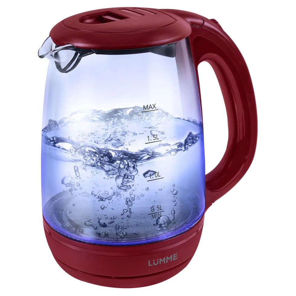 Легкий ударопрочный стеклянный чайник с голубой внутренней подсветкой в элегантном прозрачном корпусе из закаленного термостойкого стекла объемом 2 литра.