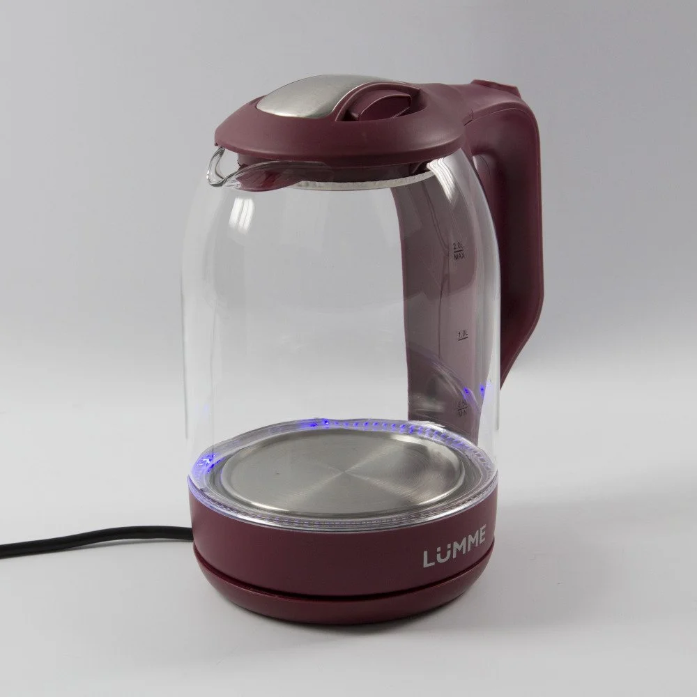 - Легкий ударопрочный стеклянный чайник с голубой внутренней подсветкой в элегантном прозрачном корпусе из закаленного термостойкого стекла объемом 2 литра.