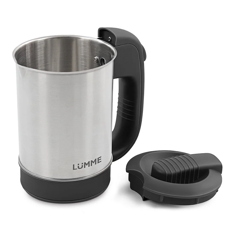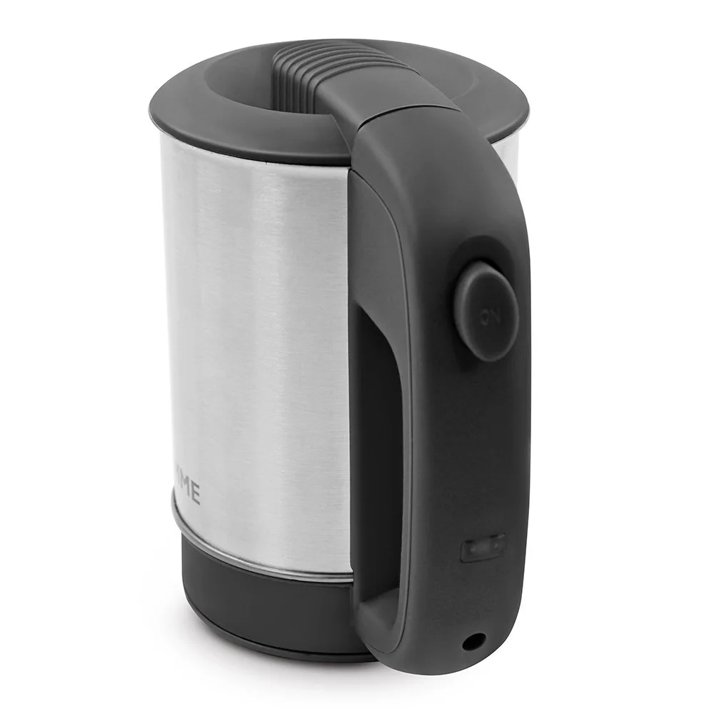 Компактный металлический дорожный чайник объемом 0.5 литра с корпусом из высококачественной нержавеющей стали.