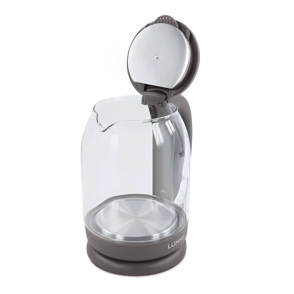 - Легкий ударопрочный стеклянный чайник с голубой внутренней подсветкой в элегантном прозрачном корпусе из закаленного термостойкого стекла объемом 2 литра.