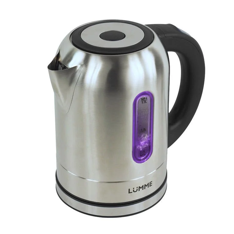 Чайник объемом 1.7 литра из высококачественной пищевой нержавеющей стали с пятью цветами внутренней подсветки, зависящими от режима работы.