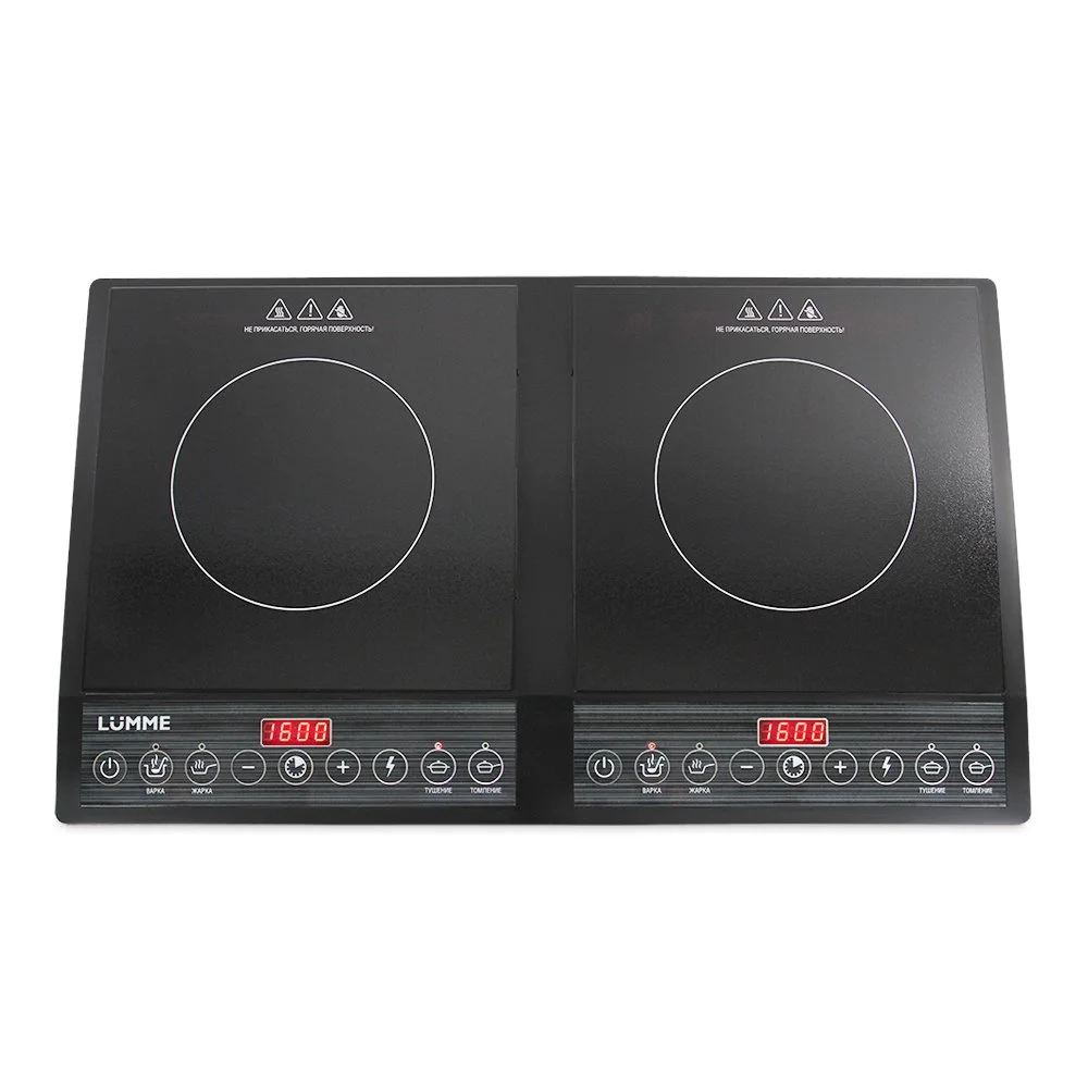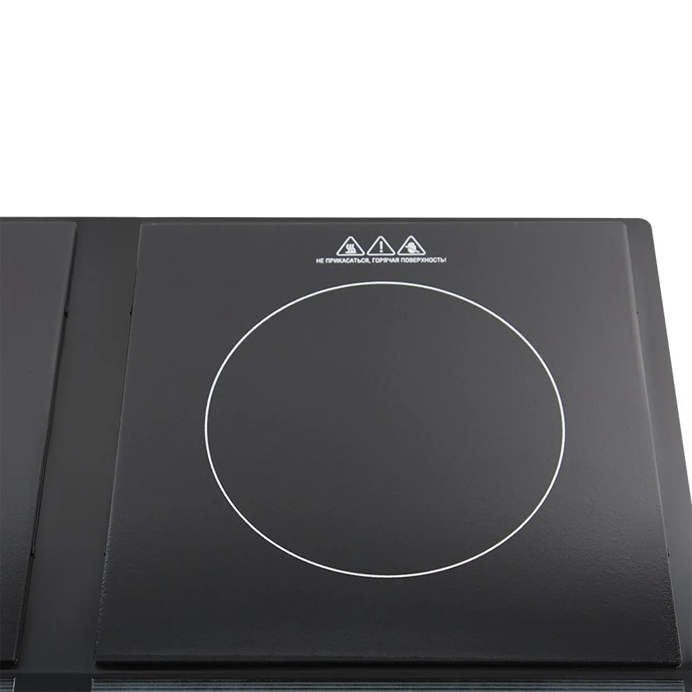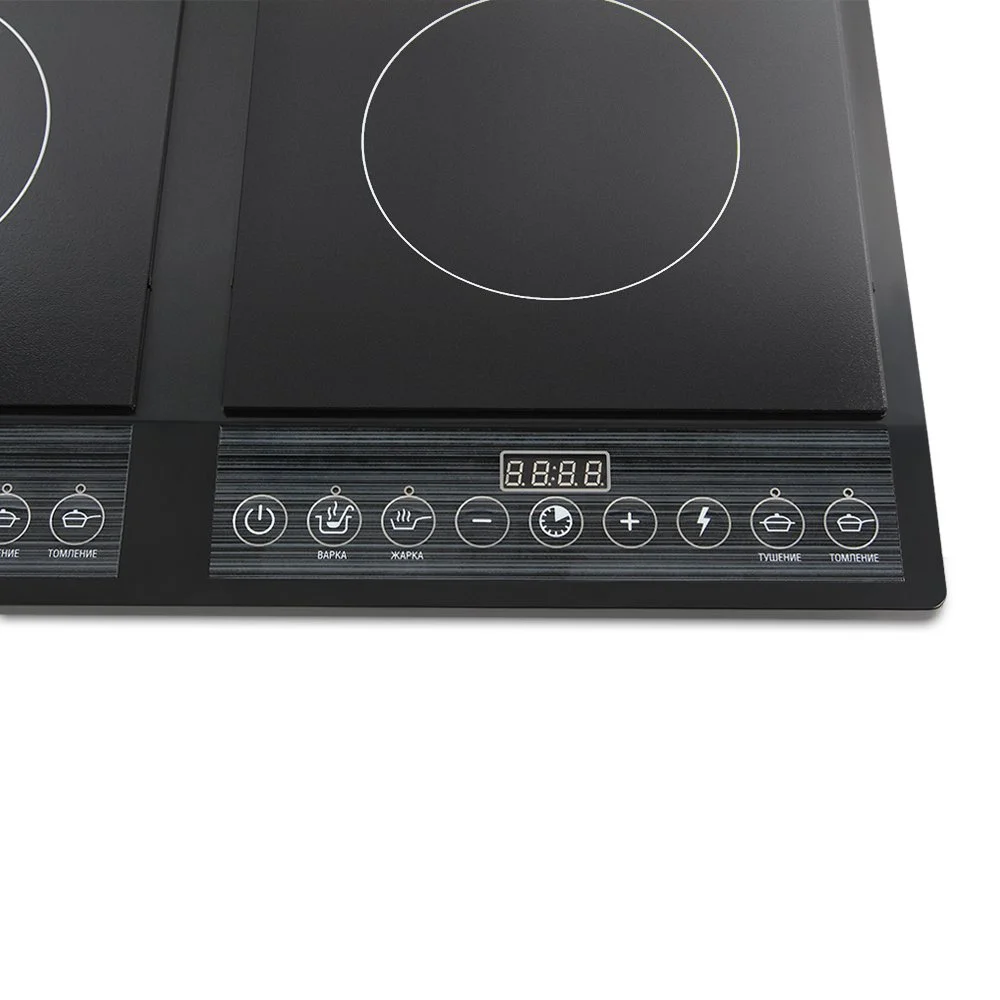 Компактная двухкомфорочная электроплитка с нагревательными элементами индукционного типа для исключительно быстрого кипячения воды или приготовления горячей пищи в посуде, предназначенной для индукционных плит.
