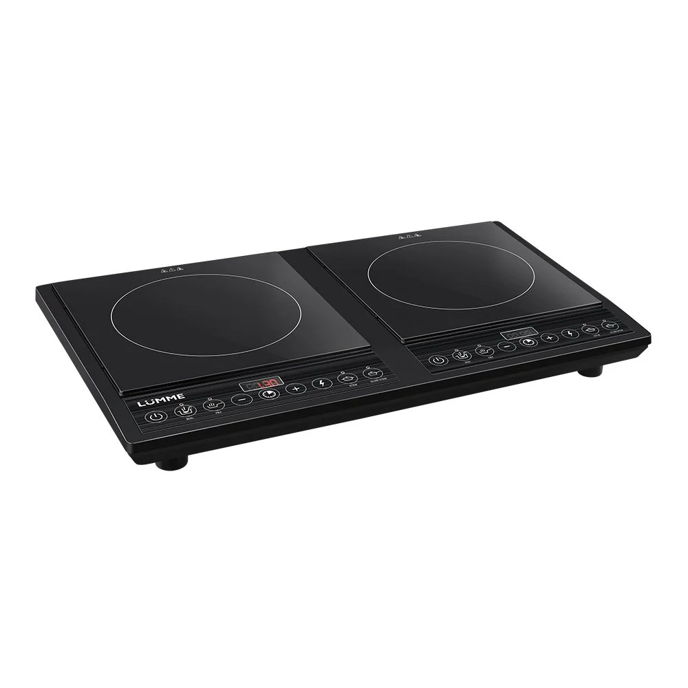 Компактная двухкомфорочная электроплитка с нагревательными элементами индукционного типа для исключительно быстрого кипячения воды или приготовления горячей пищи в посуде, предназначенной для индукционных плит.