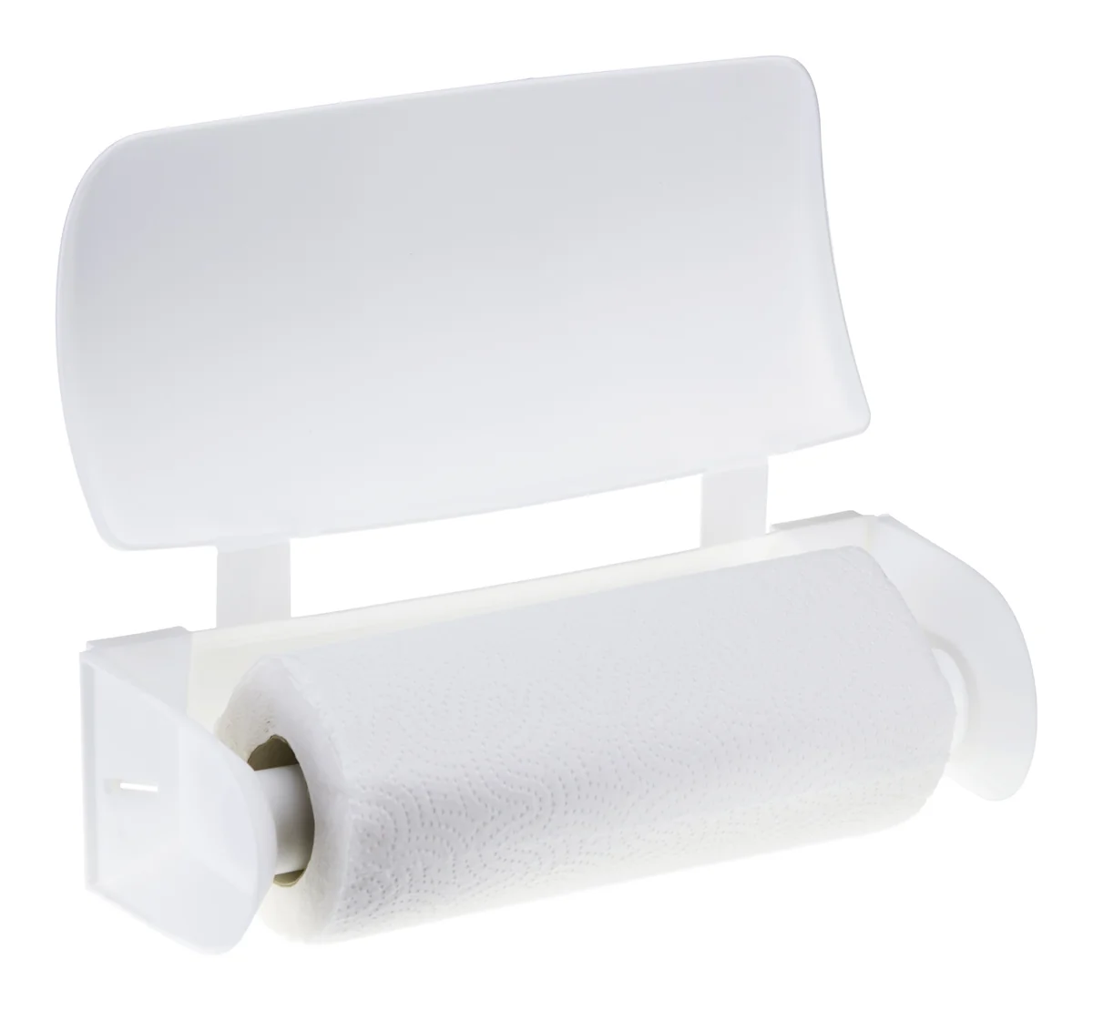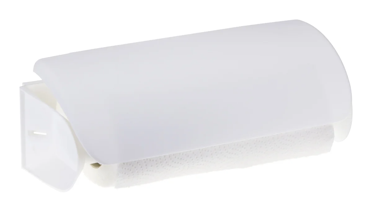- Часто рулон мешает процессу приготовления и уборке. Его нельзя поставить устойчиво, он падает и намокает от брызг. Оригинальная форма прочного пластикового корпуса надёжно его фиксирует и защищает от возможных повреждений.