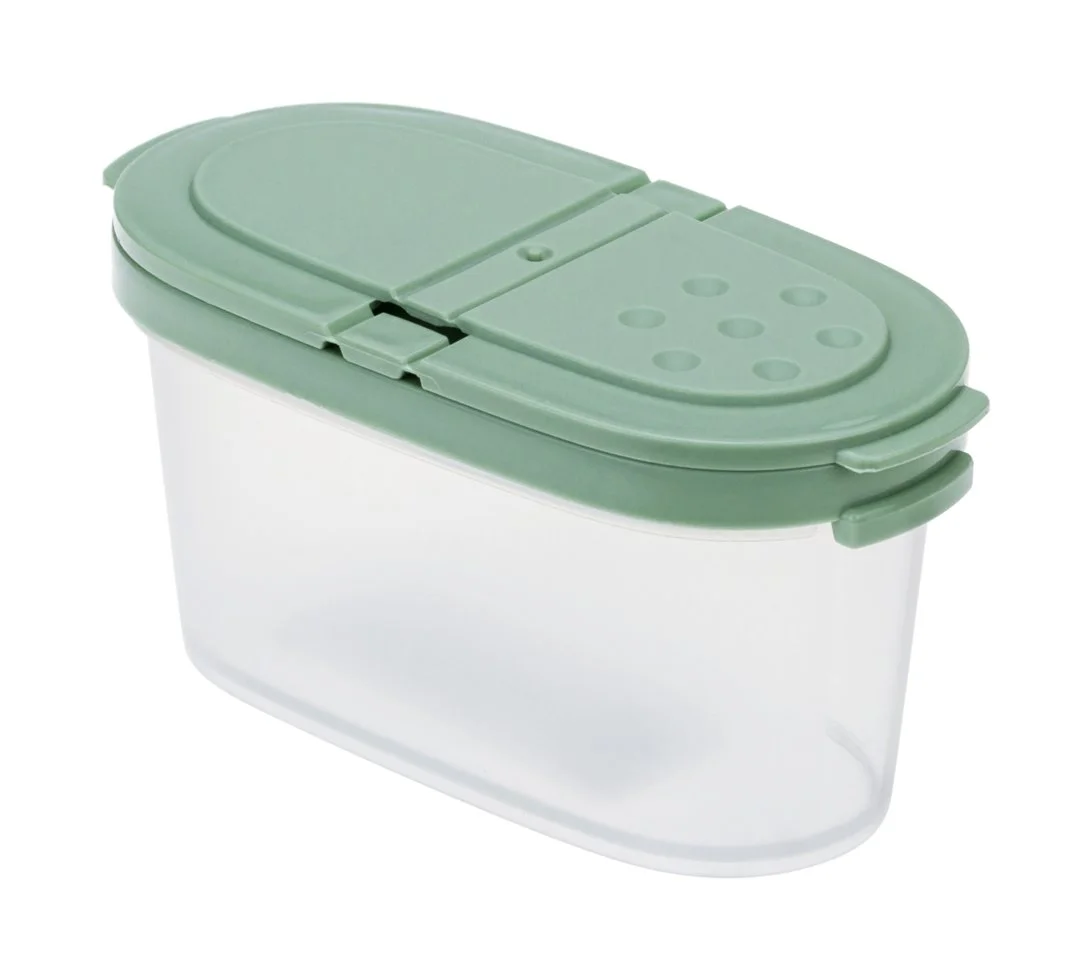 - Крышка контейнера двойная: для мелкодисперсных и для крупнозернистых специй. В зависимости от свойств специй, открывается одна из сторон крышки.