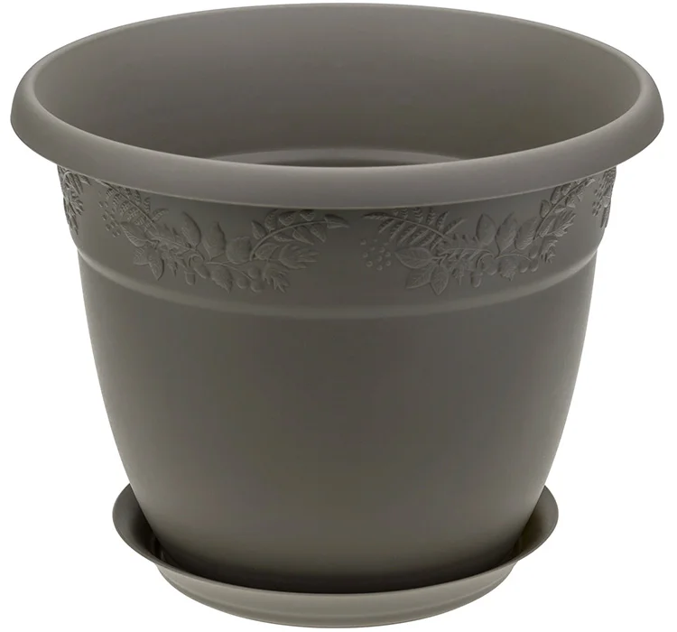 Кашпо 0,8л РЯБИНА ФРАНЦУЗСКИЙ СЕРЫЙ д=130мм с поддоном М-пластика М 3052
