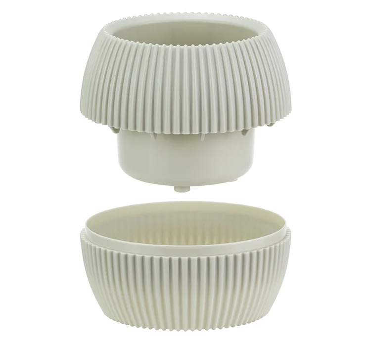 Кашпо состоит из двух частей: корпуса и поддона. Который крепиться на защёлки и используется для сбора лишней воды.