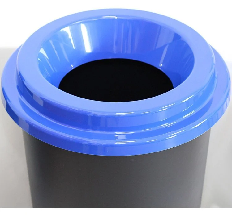 - Комплектуется яркой крышкой с отверстием, которая служит защитой от брызг и фиксатором для мусорного пакета