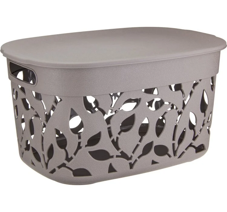 Коробка М пластика ФЛОРА 12л с крышкой М 2363 ФРАНЦУЗСКИЙ СЕРЫЙ