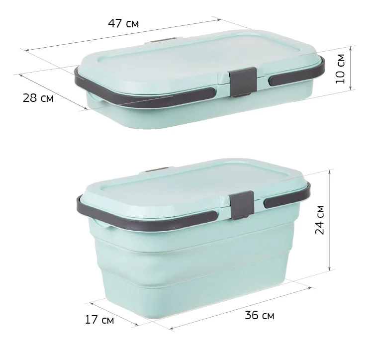 Она оснащена удобными ручками для переноски и крышкой. Идеально подойдёт для хранения и транспортировки различных предметов. Благодаря своей складной конструкции, корзину легко разместить в любом уголке Вашего дома или автомобиля.