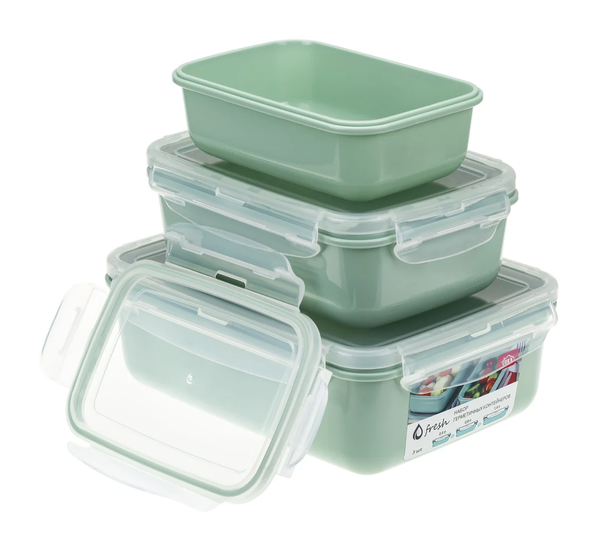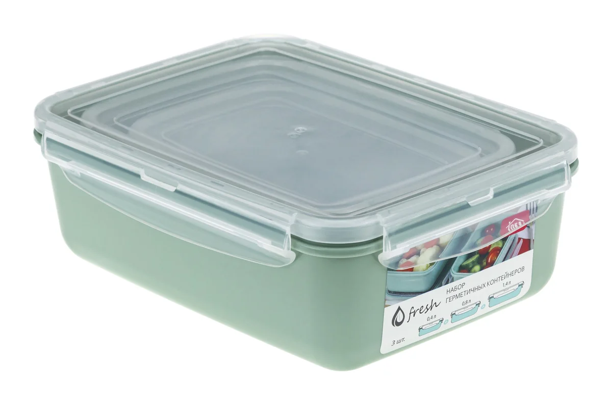 Набор ёмкостей для продуктов М-ПЛАСТИКА ФРЕШ (0,4 л + 0,8 л + 1,4 л) М 1426 фисташковый