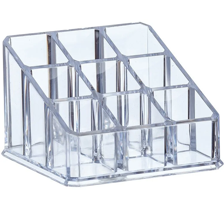 Состоит из девяти отделений разной высоты: высокие предназначены для кистей, карандашей, низкие отсеки для губных помад, лаков для ногтей