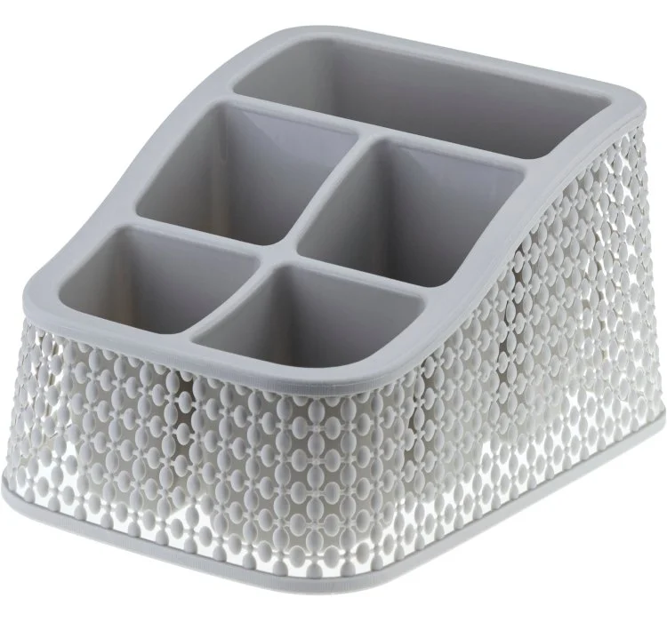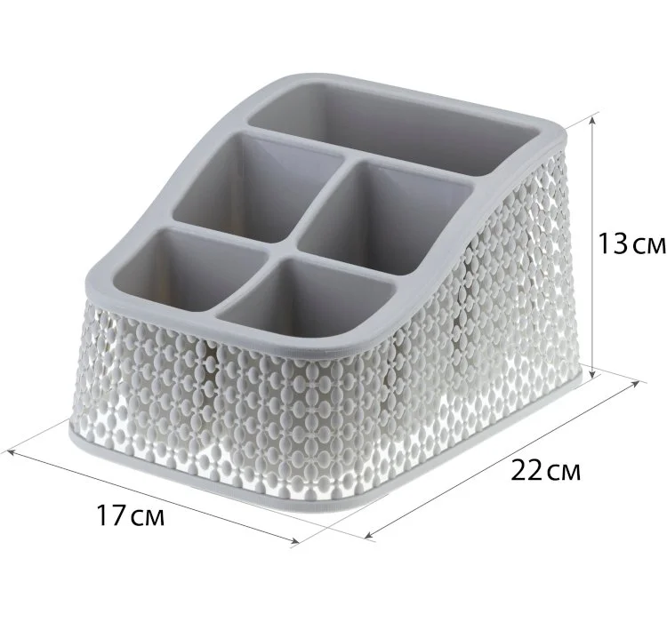 - Органайзер имеет пять отделений разной высоты. Подойдёт для хранения: канцелярии, косметики, специй, столовых приборов.