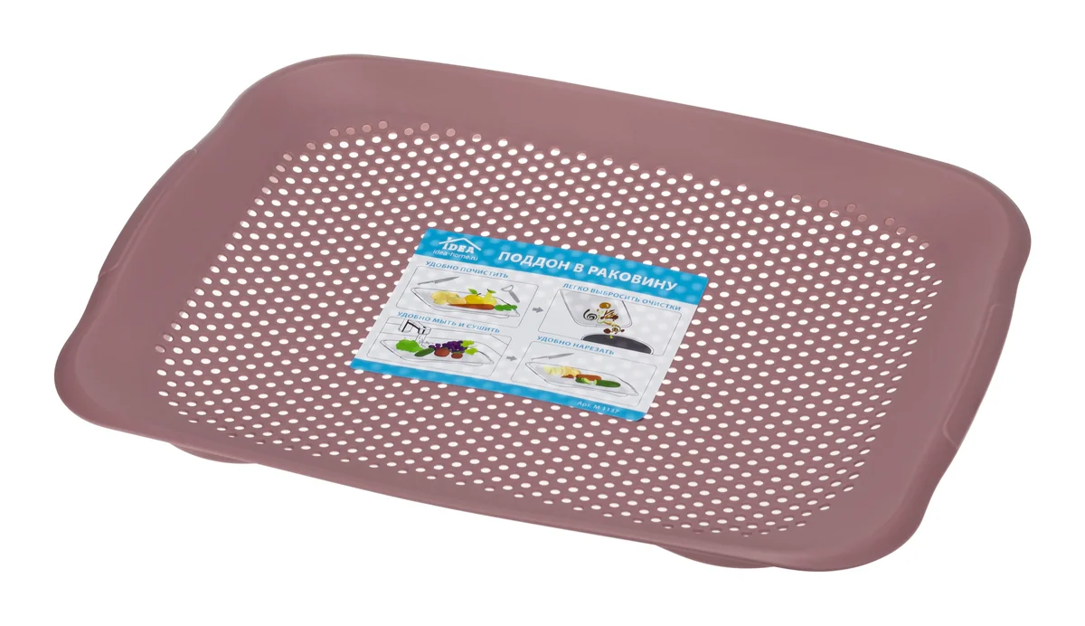 - Поддон ставится в раковину, на нем удобно мыть фрукты и зелень, чистить овощи, не боясь засорить или испачкать раковину. Очистки и мусор затем легко выбросить в мусорное ведро
