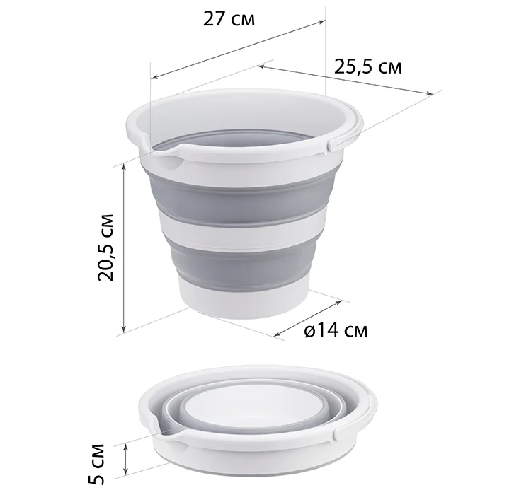 Станет отличным помощником в Вашем доме! Благодаря современным технологиям громоздкие вёдра остались в прошлом! Удобные и практичные, быстро и легко складываются за считанные секунды, что позволяет обеспечить минимум места для хранения.