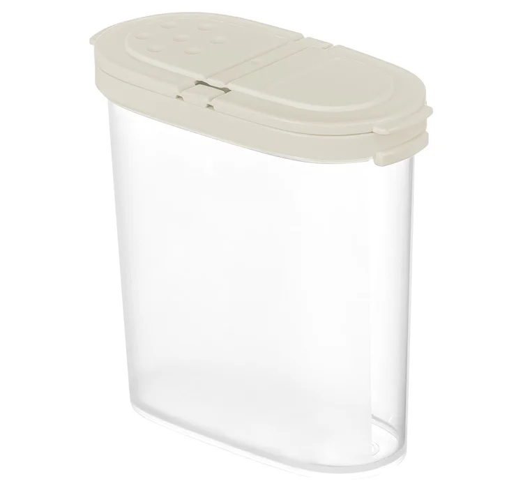 Крышка контейнера двойная: для мелкодисперсных и для крупнозернистых специй. В зависимости от свойств специй, открывается одна из сторон крышки.