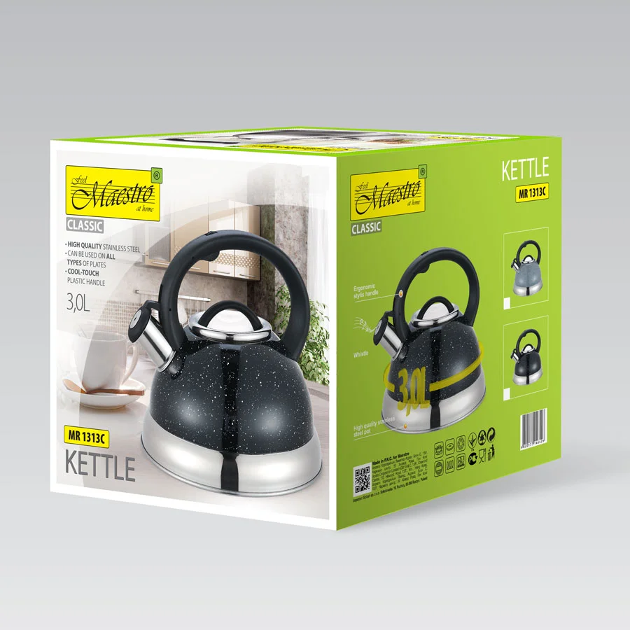 Чайники для плит » MAESTRO Чайник MR-1313-BLACK Чайник MR-1313-BLACK Производитель: MaestroМатериал: нержавеющая стальОбъем: 3 - 3,9Наличие: Нет в наличииБонусы: 26 ₽ Код товара: 82336 нет в наличии Описание Объём: 3 л Высококачественная нержавеющая сталь Ненагревающаяся пластиковая ручка Поделитесь ссылкой: