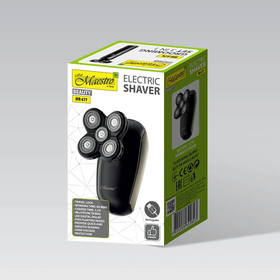 - Пять плавающих головок обеспечивают быстрое и гладкое бритьё
