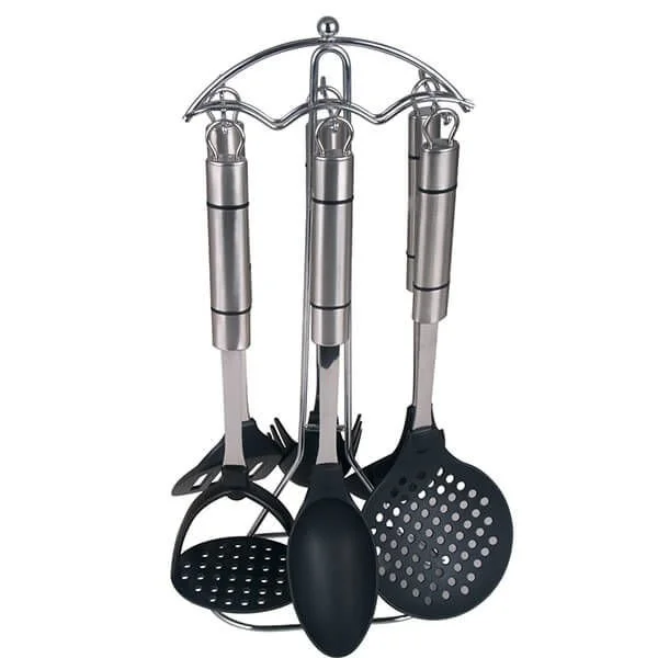 - Набор состоит из: лопатка, картофелемялка, половник, шумовка, ложка, подставка, ложка для спагетти