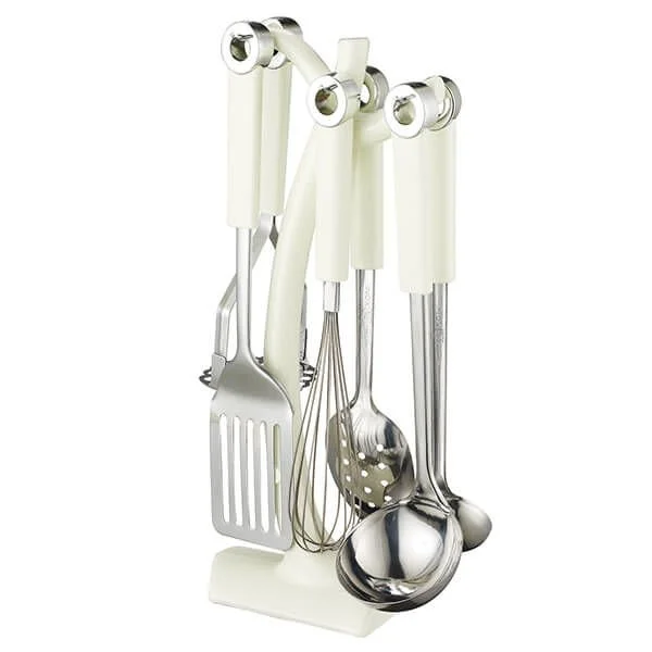- Набор состоит из: лопатка, картофелемялка, половник, ложка, подставка, венчик, соусник