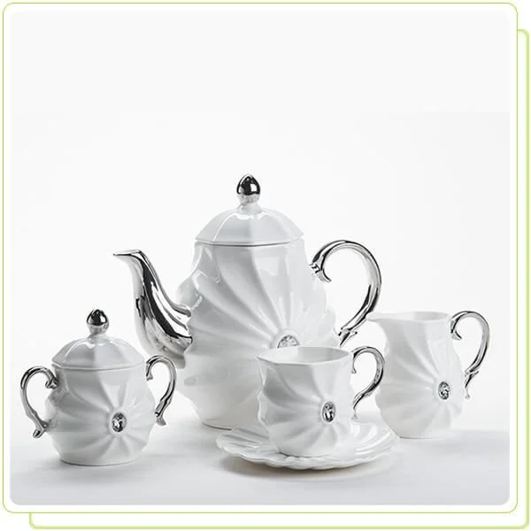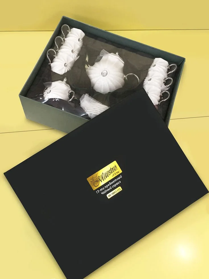 - Чайный набор состоит из: чашки 7 шт, блюдца 7 шт, чайник заварник 1 шт, сахарница 1 шт, молочник 1 шт
