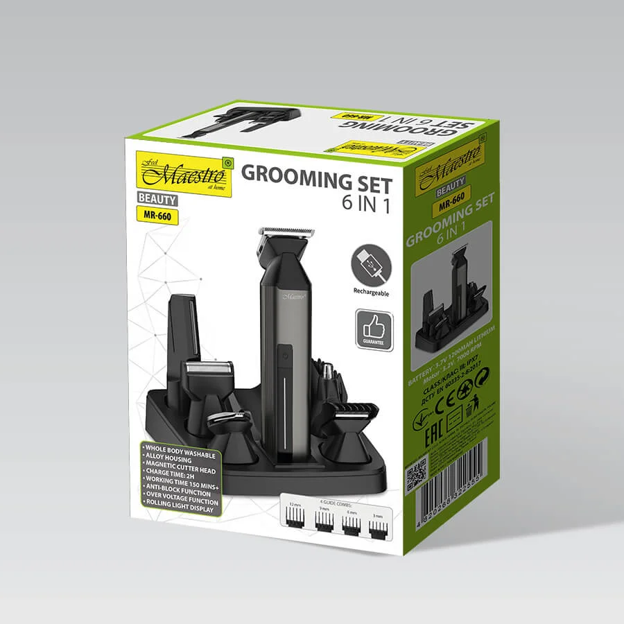 - В комплекте: USB-кабель, расческа, щетка, подставка, бутылка с маслом, ограничительная расческа