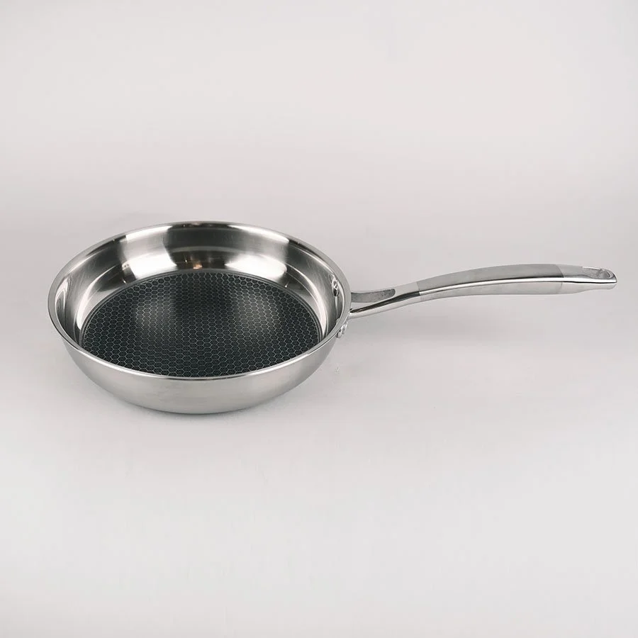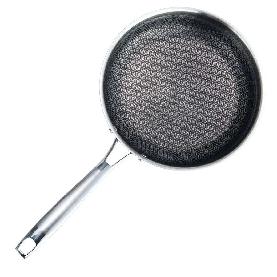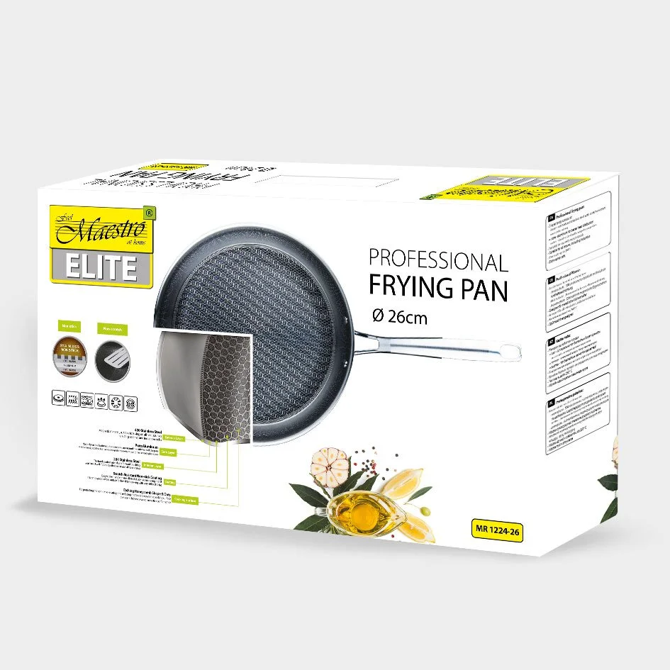 Профессиональная сковорода Maestro MR 1224-26 диаметром 26 сантиметров. Корпус сковороды Maestro MR 1224-26 имеет 3 слоя: внутренний слой изготовлен из текстурированной нержавеющей стали с антипригарным покрытием устойчивым к механическим воздействиям (можно использовать металлические лопатки), средний слой - высококачественный алюминий способствует быстрому и равномерному распределению тепла, наружный слой - нержавеющая сталь обладающая магнитными свойствами. Подходит для всех источников тепла включая индукцию.