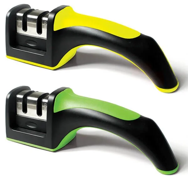 - Благодаря не скользящей, резиновой и удобной рукоятке, это точилка для кухонных ножей очень удобная и безопасная