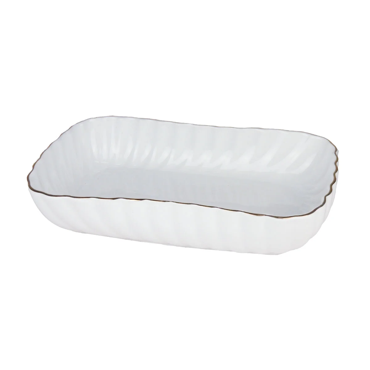 Прямоугольное глубокое блюдо «Кармен» с золотой отводкой, размеры 250×185×60 мм, 501-S