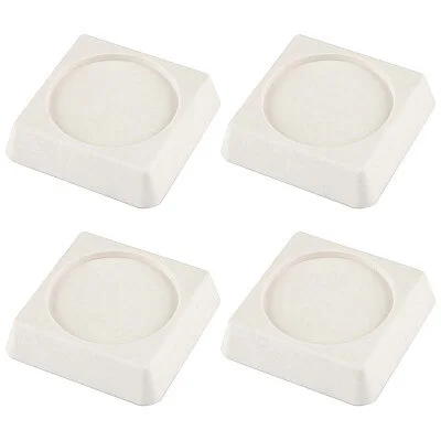 Белые квадратные антивибрационные подставки. Материал:ТЭП. Размеры одной поставки: 58*58*15мм, внутренний диаметр выемки: 45мм. - Поглощают вибрацию и снижают уровень шума во время работы бытовых приборов; - Предотвращают смещение стиральной машины во время работы; - Защищают любые напольные покрытия от деформаций и повреждений; - Уменьшают износ бытовых приборов; - Подставки устанавливаются под ножки стиральных, сушильных, посудомоечных машин, холодильников, кухонных плит, спортивного инвентаря и мебели.