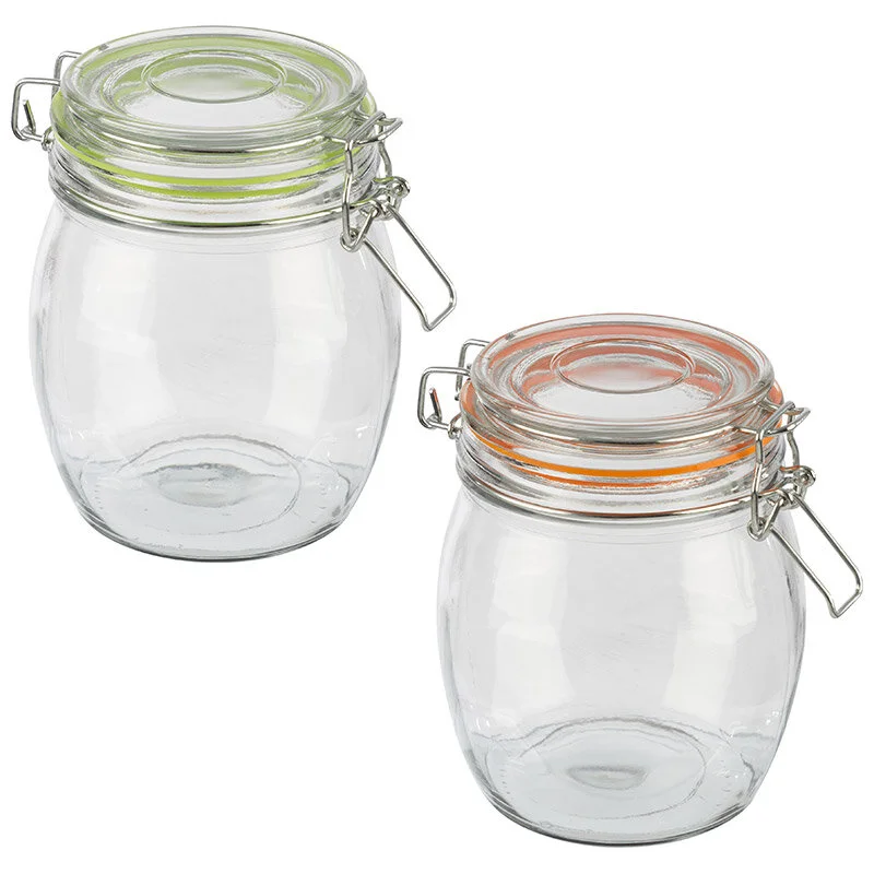 Банка стеклянная с бугельным замком 750 мл Материал: натрий-кальций-силикатное стекло, металл, силикон. Цвет силикона - яркий зеленый+яркий оранжевый - микс пополам в транспотной коробке. Объем 750 мл, высота: 14 см, верхний диа - 11см, нижний диа 11 см, Упаковка: стикер/коробка с ячейками.