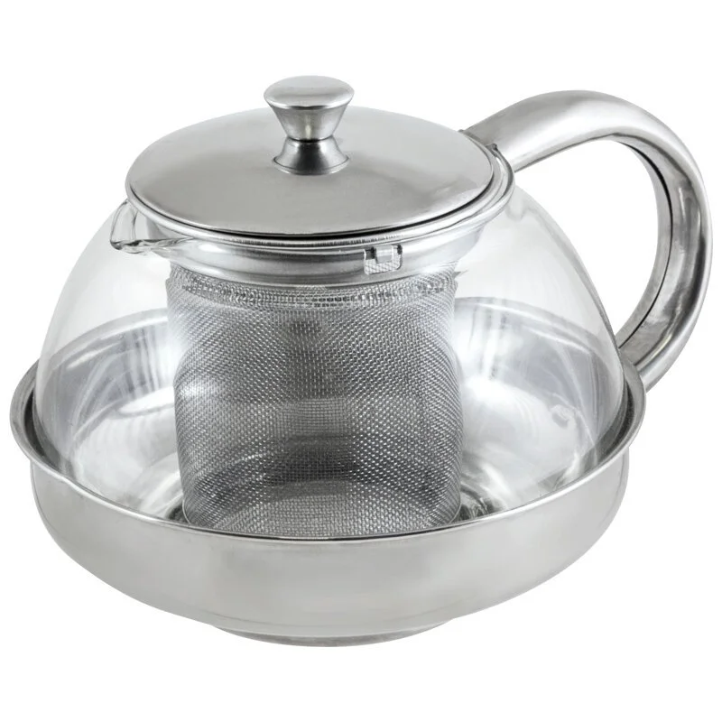 Чайник заварочный объемом 600 мл Выполнен из нержавеющей стали и жаропрочного стекла Фильтр из нержавеющей стали
