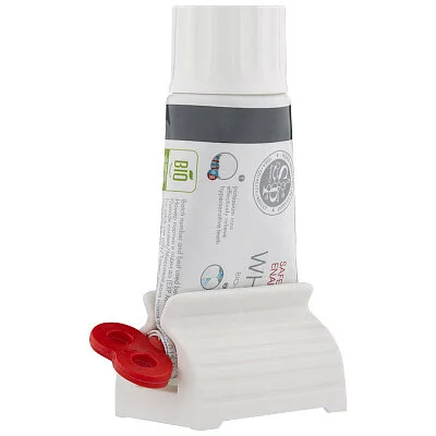 Дозатор для зубной пасты Подходит для любых тюбиков шириной до 56 мм. Металлический или пластиковый тюбик от зубной пасты, косметики, еды накручивается внутри дозатора, а когда содержимое закончится - просто вытаскивается. Имеет подставку, благодаря которой удобно ставить дозатор. Вставьте нижнюю часть тюбика в прорезь зажима-ключа, затем поместите зажим-ключ в подставку. Вращением ключа выдавите содержимое тюбика. Размер:7*4,5**3,5 см Вес: 27 гр Материал: полипропилен Цвет: белый+красный