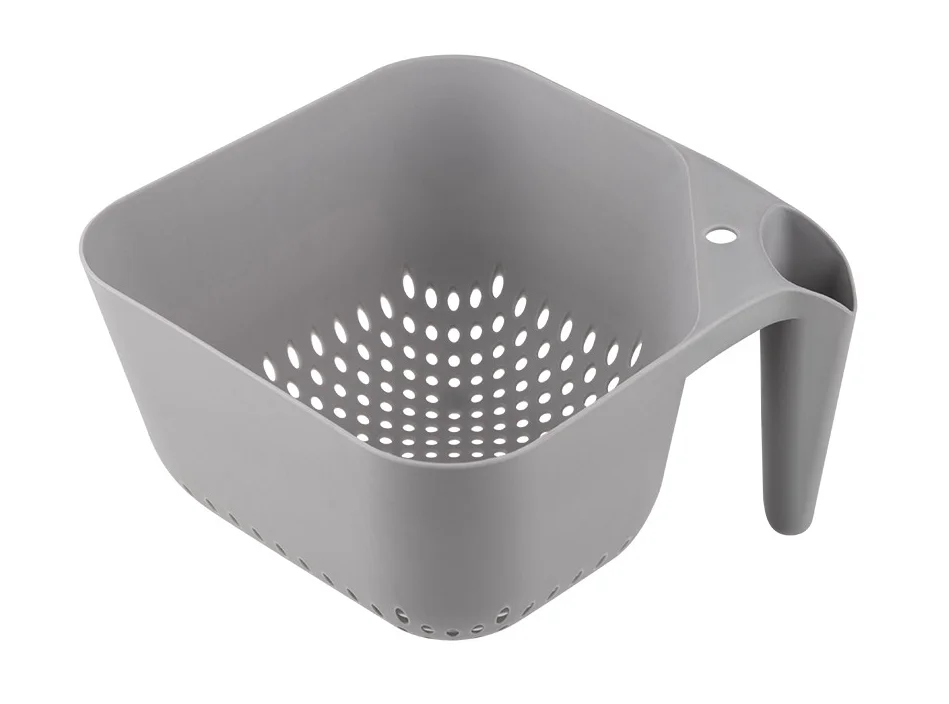Квадратная форма и эргономичная вертикальная рукоятка обеспечивает устойчивость на ровных поверхностях стола, раковины или полки. Дуршлаг идеально подходит для мытья ягод, фруктов, овощей и зелени. Размер: 19*19*11 см Емкость: 2,5 л Материал: полипропилен цвет: серый