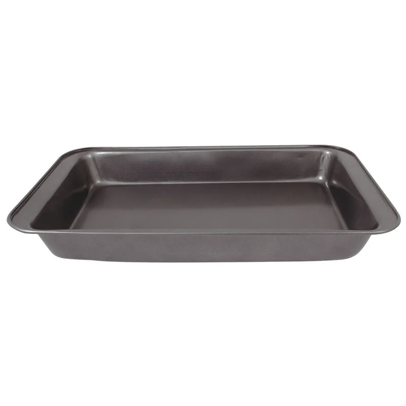 Размер: 42,5*29*5 см Толщина стали: 0,4 мм Материал: углеродистая сталь с антипригарным покрытием Форма для выпечки/запекания: * проста и удобна в использовании * не изменяет цвет и вкус пищи * легко моется * антипригарное покрытие исключает необходимость использования большого количества масла * подходит для мини печей и духовок * используются для запекания пищи в фольге, на бумаге для выпекания, а так же непосредственно в форме (в данном случае рекомендуем использовать небольшое кол-во масла) Упаковка: цветной вкладыш + пакет