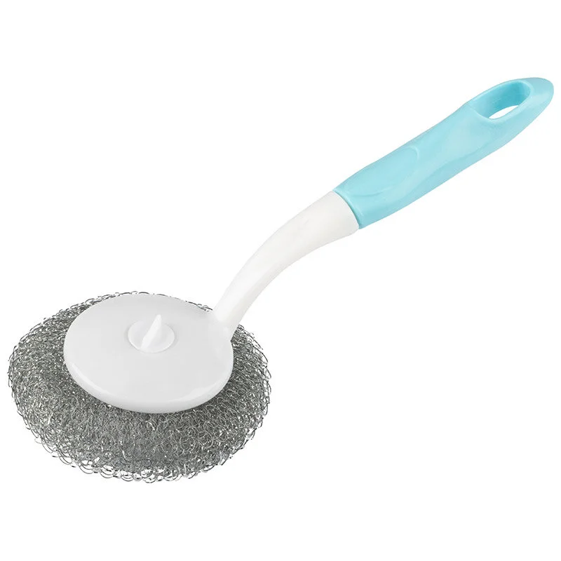Предназначена для чистки поверхностей и посуды от сильных, стойких загрязнений. Хорошо справляется с очисткой грилей, барбекю, решёток и других предметов для жарки. Не рекомендуется использовать для посуды с тефлоновым покрытием. Размер: 24*8,5 см Длина рукоятки: 15 см Материал: металл, полипропилен Цвет рукоятки: голубой