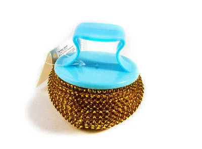 Предназначена для чистки поверхностей и посуды от сильных, стойких загрязнений. Хорошо справляется с очисткой грилей, барбекю, решёток и других предметов для жарки. Не рекомендуется использовать для посуды с тефлоновым покрытием. Размер: 7,5*7,5*6 см Материал: полипропилен, металл Цвет рукоятки: голубой