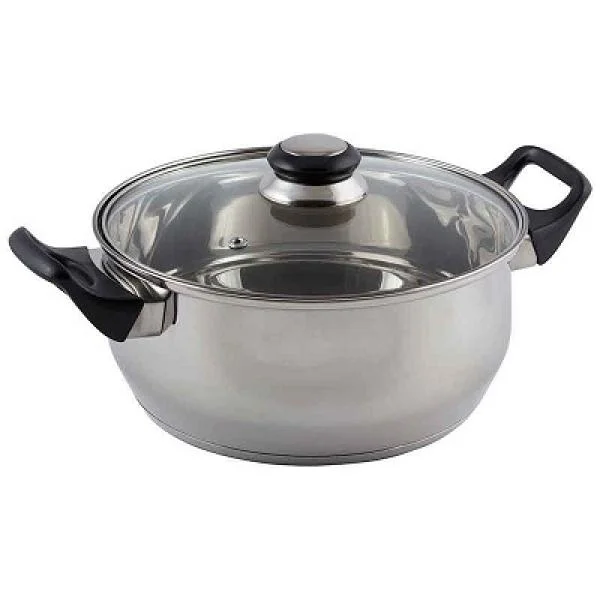 Кастрюля из нерж стали с крышкой (стекло) BAK-04, 3.9 л, ручки - бакелит, без ТМ